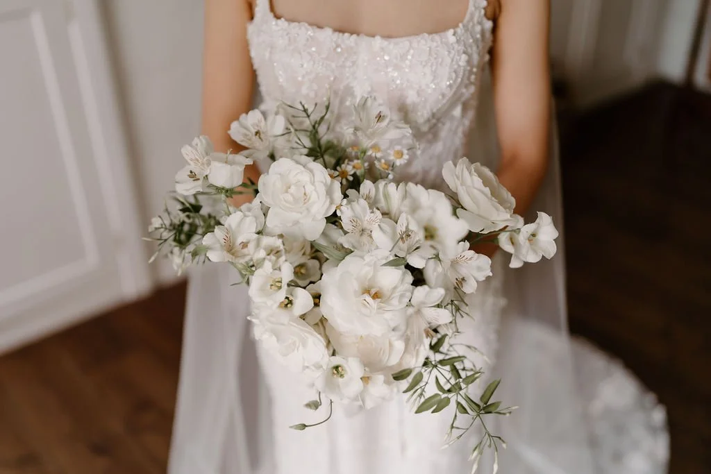 A floral-filled photography studio wedding for R&C. Modern chic. Photography by Agnes Black